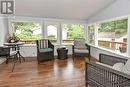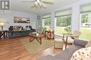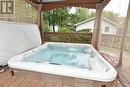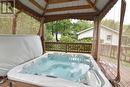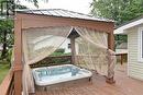 FOUR SEASON HOME - Fully Furnished 2 Bedroom / 2 Bath Bungalow in a quiet location just 2 minutes from Lake Huron. Enter into the spacious living room with an inviting fire place. Kitchen includes white cabinets, lots of counter space and a breakfast bar. Appliances included. The dining room is large enough to accommodate a large table and hutch. Bright family room with another fireplace, lots of windows and sliders to the front deck and Gazebo. Four season sunroom leads to the rear wraparound deck with a "lakeview" Hot Tub. Two decent sized bedrooms. Laundry located in the en suite. Second bathroom (4PC) includes a tub/shower. Laminate floors throughout. Propane furnace (2022). Insulated crawl space. Beautiful yard with perennial gardens. Shed with hydro includes all of the tools and lawnmower. Metal roof. Security systems with outdoor cameras. This home would suit someone looking to retire comfortably and inexpensively. Land lease will be $2600 for the first year and will increase $100/year until it reaches $3000. Band fees approx $2250/year. No conventional mortgages available for leased land. Buyers must have current police checks and proof of insurance before closing. Home cannot be rented out. Seller will have septic pumped out and inspected to meet band requirements before closing. Close to golf, restaurants, shopping and of course the stunning beaches along Lake Huron. (id:27)